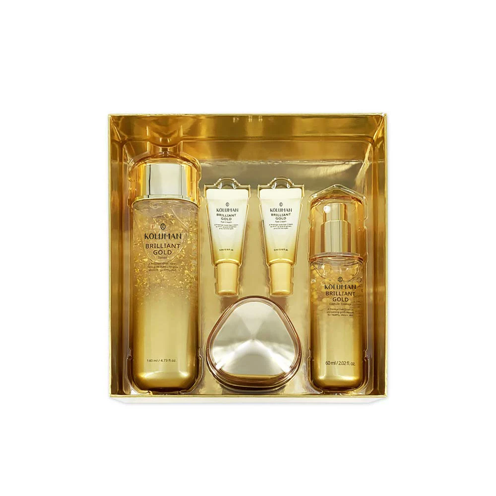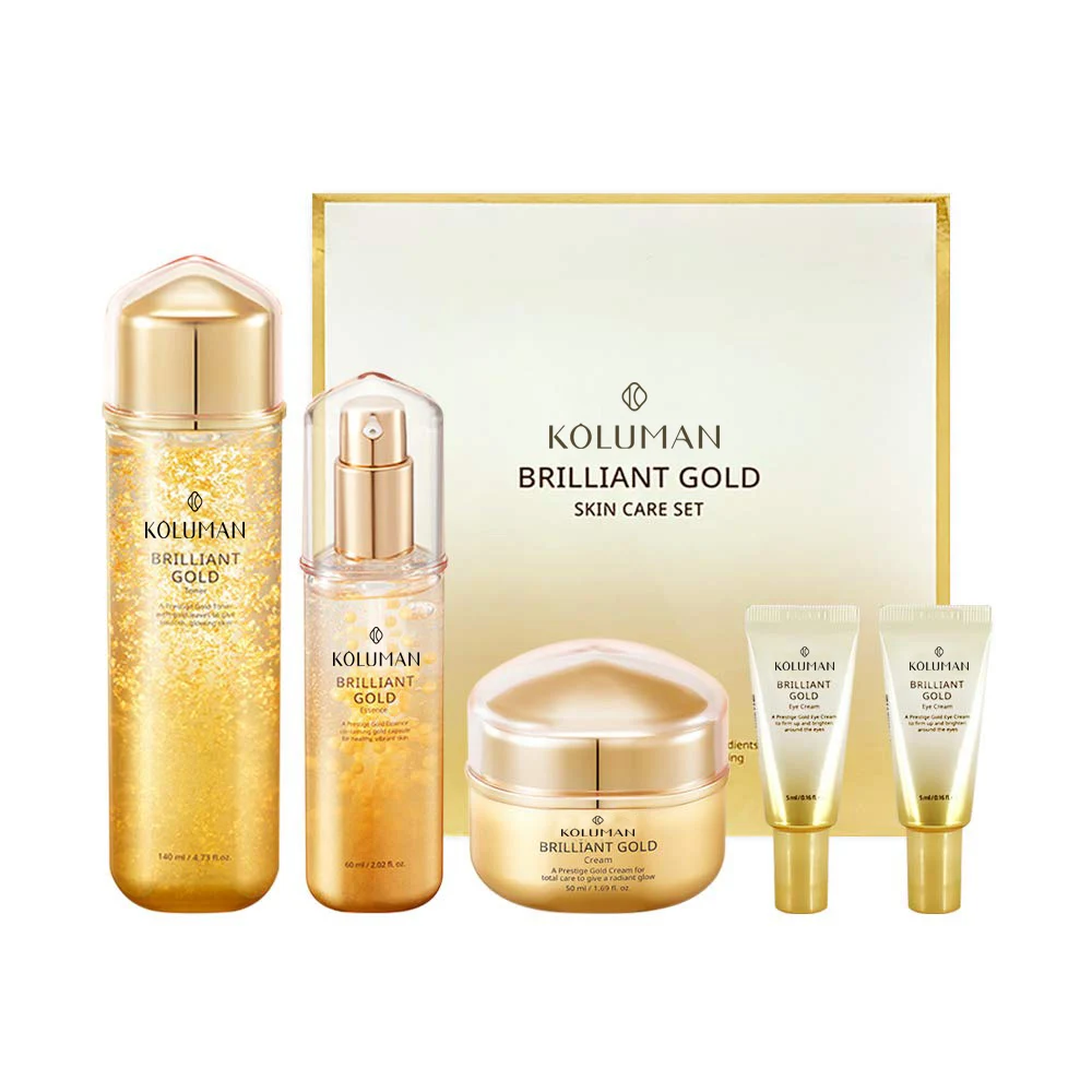 New 24K Gold Facial Skincare Set 5-in-1 Anti-Aging Organic Serum Moisturizing Whitening Ceramide Brightening Exclusive Gift